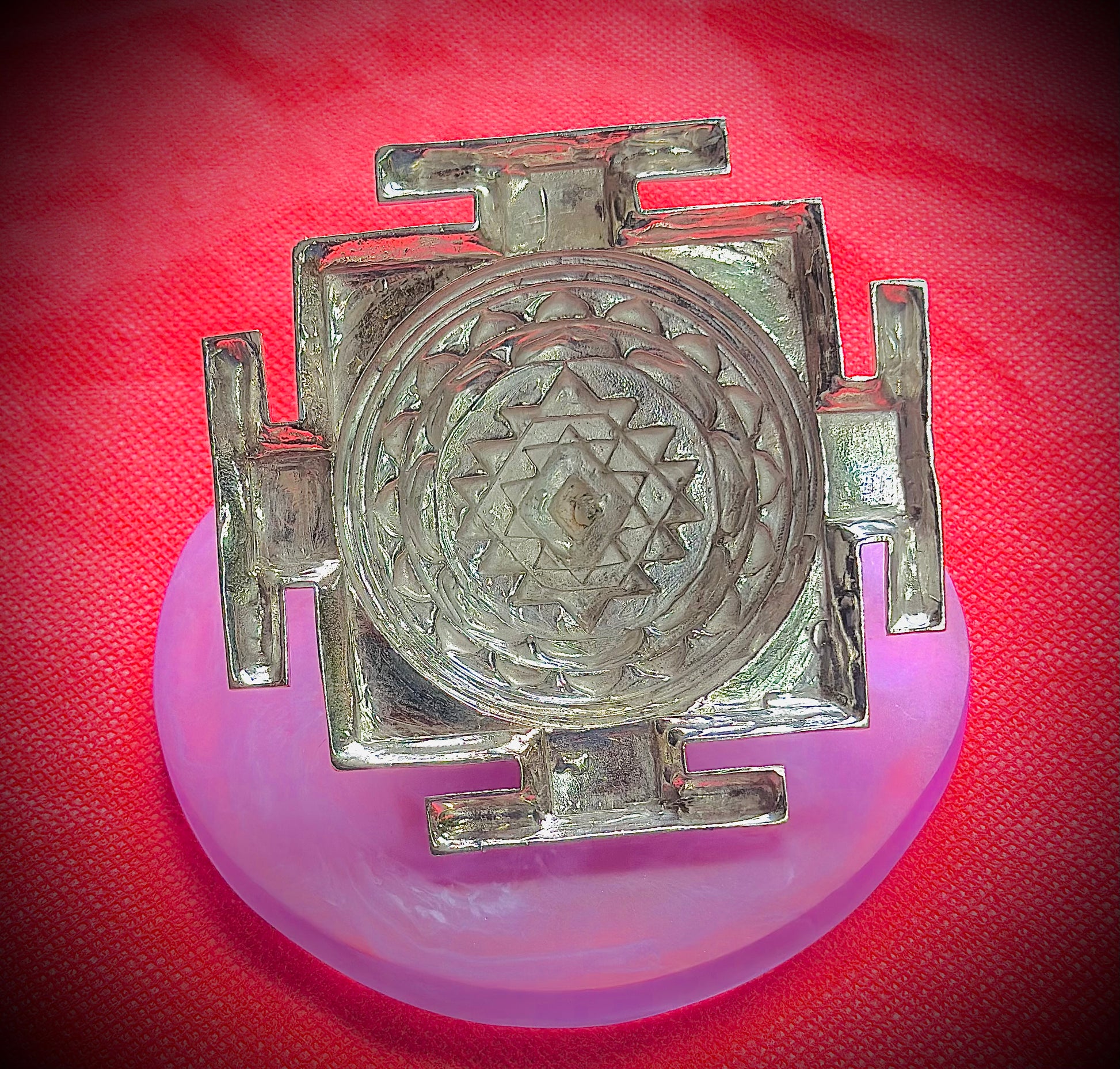 The Maha Meru symbolizes Mount Meru, the cosmic mountain representing the union of Shiva and Shakti, and is closely associated with the worship of Tripura Sundari Devi, the beautiful and compassionate form of the Divine Mother.
